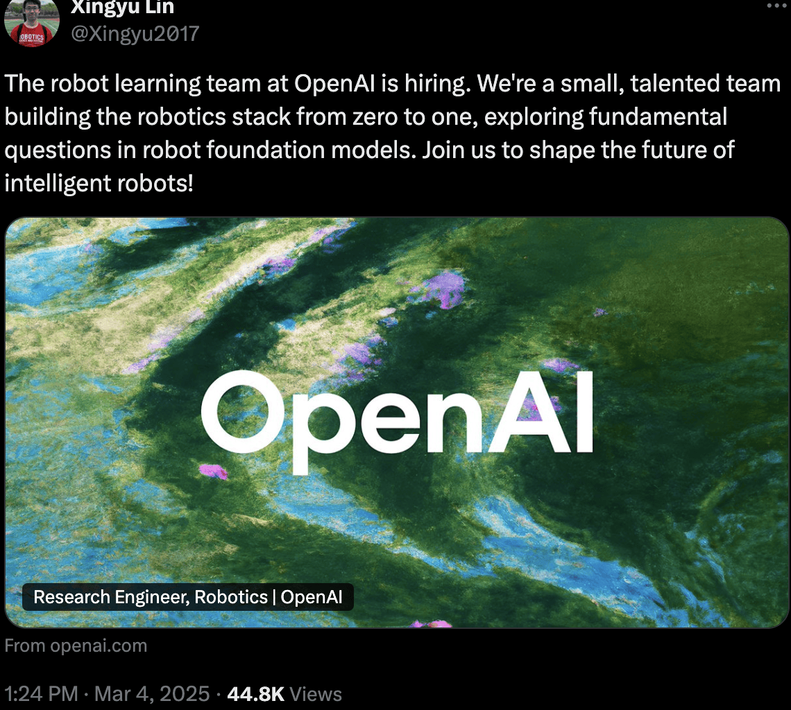 聘请通知布告引见,OpenAI机械人团队的是“扩展根本模子的功能,以支撑动态现实中的通用机械人,确保靠得住且平安地操做运转。”。