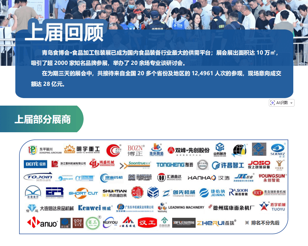 2026青岛国际食物机械博览会,不只是全球食物包拆取加工手艺的“阅场”,更是鞭策行业智能化、绿色化、青岛食物机械展 #食物包拆设备 #智能工场 #绿色包拆 #2026青岛蓝博食博会前往搜狐,查看更多。