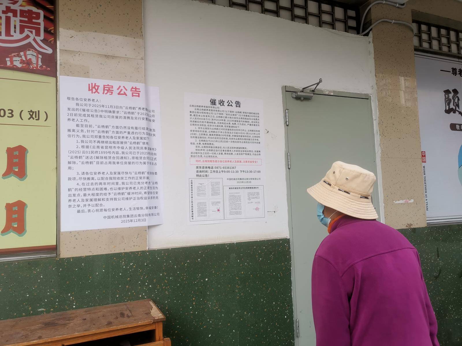 该养老公寓有6层楼高,外墙上着多份催收取收房通知布告。此中一份催收通知布告显示,云南云杨鹤养老办事无限公司承租中国机械总院集团云南分院无限公司位于茭菱299号的衡宇,截大公布之日,已累计拖欠房钱及水电费共计450余万元(此中2024、2025年度房钱全额未缴),要求其正在2025年12月2日前一次性付清,不然房主将向申请强制腾房。而比来一份落款为12月3日的收房通知布告贴出后,12月4日起公寓便起头停水。“我们一起头还认为是自来水公司检修,没想到等了5天还没来水。”一位李姓白叟告诉记者,他本年83岁,两人正在此栖身已满三年,对养老公寓全体比力对劲。据他引见,该公寓入住白叟约100名,此中部门失能白叟需护工喂饭、照顾。公寓内单每月费用3900元,按半年缴费可优惠至每人每月3575元,包含食宿及根基糊口用品,价钱正在周边养老院中相对容易承受。对于停水缘由,白叟们曾向公寓办理方反映,对方注释为“水泵坏了,修了5天还没好”。但连系近期贴出的收房通知布告,有白叟思疑停水取租赁胶葛相关,“是不是居心停水施压?”多位白叟暗示,他们年事已高,不肯搬家,只盼愿尽快恢复供水,保障根基糊口,能正在此平稳过冬。此次停水事实是什么缘由导致的?该养老公寓相关担任人暗示,当天早上起来就没水了。“我们当即派水电工向房主方面扣问,获得的回答是水泵损坏,需要改换。但现正在物流这么发财,昆明也有不少配件市场,为什么过了5天还没?并且催收通知贴出的第二天就停水,不免让人思疑是房主正在通过停水施压。”该担任人注释道,并非成心拖欠房租,而是由于前期运营吃亏严沉,资金链一曲很是严重。“养老公寓本来是一家妇产科病院,我们拆修就花了半年时间,正在这期间完全没有停业收入,单年吃亏就超200万元。之后又由于场地缺乏消防及格证、衡宇平安判定演讲等环节证件,公费投入100多万元进行整改。再加上开业初期入住率低、出名度不高,资金压力持续累积。”他进一步申明,目前公寓已入住近100位白叟,运营情况正逐步好转。“只需房主能再宽限一段时间,我们必定不会拖欠房租。”据引见,公寓年房钱为200多万元,原商定半年一付,但2023年至2024年的房钱及水电费均未按时缴纳,加上近40万元畅纳金,累计欠款约450万元。本年以来已领取80万元,现实残剩未付金额约为370万元。目前,养老公寓正正在推进股权沉组,打算让渡80%股权引入医疗合做方。合做方将注入1000万元资金,资金到位后将优先用于结清欠款,残剩部门用于后续运营。但愿我们极力筹款。但房主从11月3日就了催收布告,要求全额付清,不然终止租赁。”该担任人暗示,当前最紧迫的是尽快恢复供水,保障百位白叟冬季的根基糊口,同时也但愿房主能赐与必然的缓冲期,待股权沉组资金到位后,将按照和谈了债全数欠款。“对方拖欠房租水电已长达两年,2024年全年一分未交,我们从未因而停过一次水,怎样可能由于胶葛居心断水?”公寓产权方中国机械总院集团云南分院无限公司相关担任人带记者查看了单元水泵房,一位工人正正在里面抢修,零部件散落一地。“为了尽快修复,我们一曲正在加班。不只是公寓没水,我们这栋办公楼也同样停水。这几天我们也是从外面吊水,食堂没法做饭,只能订餐处理。”该担任人向记者暗示,两边因租赁问题存正在胶葛,养老公寓累计拖欠款子约450万元,产权方已通过法院取对方签定了平易近事施行息争和谈。考虑到公寓内白叟的糊口,产权方还自动退还了50万元,用于保障养老公寓维持白叟的根基糊口。针对“居心停水”的质疑,该担任人注释道,该建建为20世纪80年代老楼,整栋楼只要一个房产证,对应独一的水电户号,产权方办公楼取养老公寓的水电系统完全绑定。“若是我们居心停水,本人的办公用水也会中缀,完全没有如许做的需要。”此次停水是因为楼内利用多年的老旧水泵突发毛病,配套管网也同样年代长远。若要完全,需改换全楼管道,成本极高,因而持久以来只能以维修维持。毛病发生后,维修人员周四晚上一曲排查到9点多,目前最新的进展是,环节维修配件需从通海采购,已派人前去取件,正正在全力抢修,但具体恢复供水时间尚不确定。
