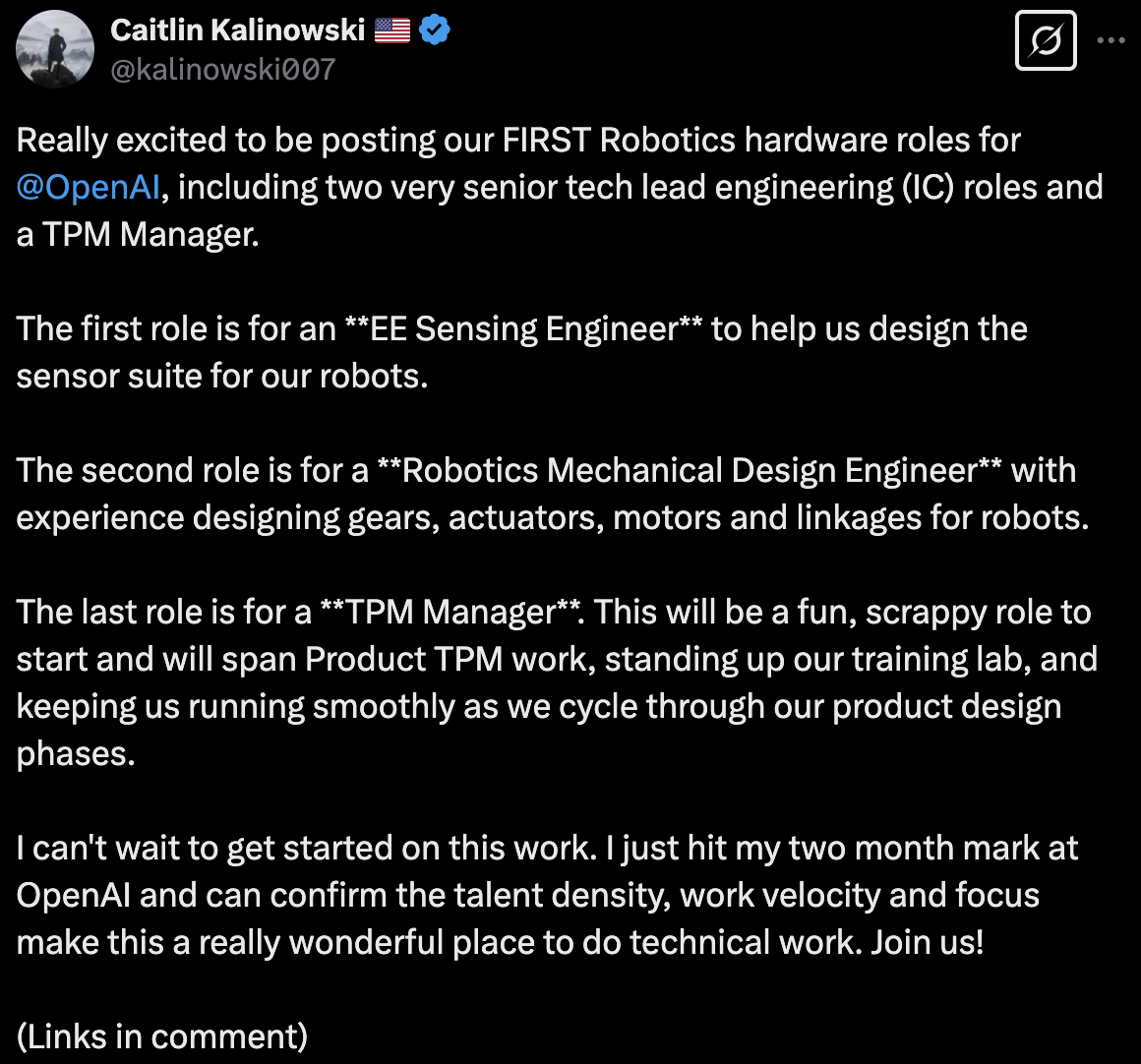 分析聘请环境和OpenAI副总裁的讲话,可见现在OpenAI的机械人。